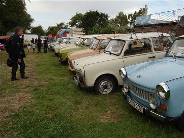 Treffenwiese parkten bereits über 200 Trabis und andere IFA-Fahrzeuge.Zwischen Benzingesprächen und Kinderspielen und der Versteigerung