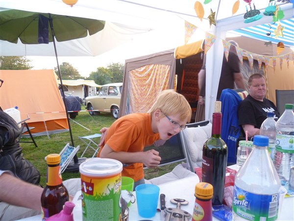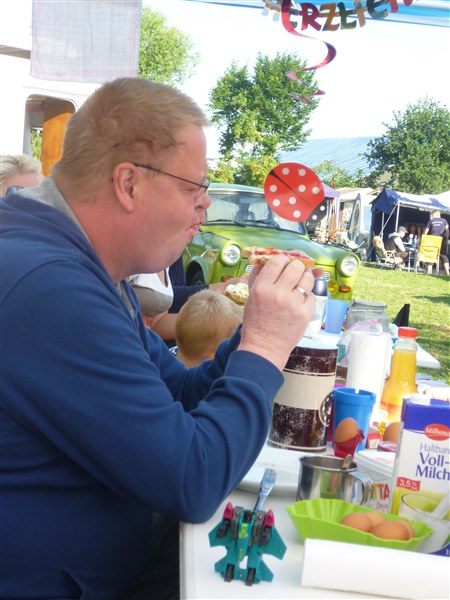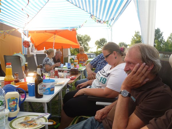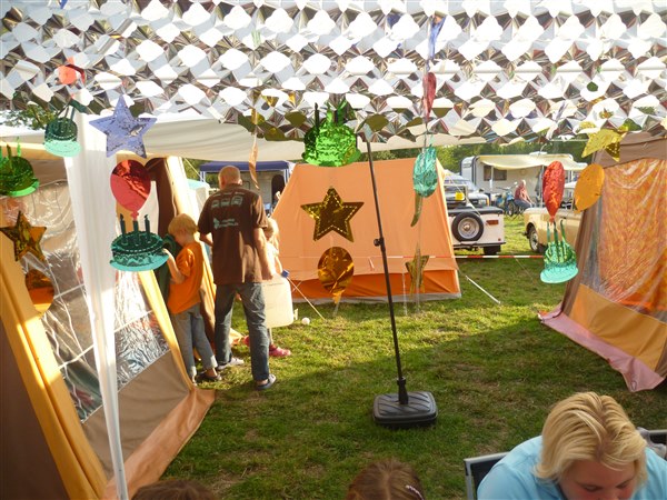Weiterhin wurden die Pavillons geschmückt, da unser Ingo am Samstag Geburtstag hatte und mit uns etwas feierte. Am NAchmittag wurde ein von den Sputniks extra restaurierter DDR-Anhänger auf