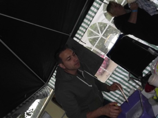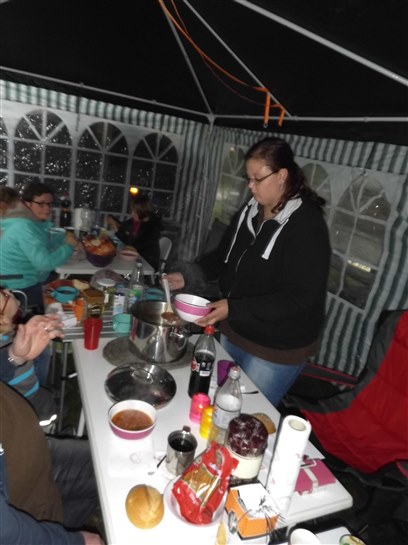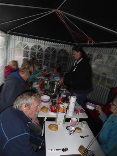 Abends saßen wir in unserem von Stefan-Thomas mitgebrachten großen Partyzelt und aßen Grillwaren und Salate.
