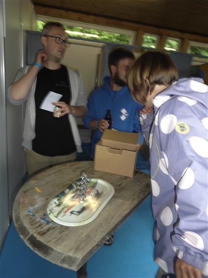 nahmen wir an den Trabi-Spielen teil. Abends gab es eine Pokalvergabe. Jede/r Teilnhemer/in hatte im Vorfeld eine Stimmkarte, um nach eigenen