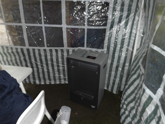 mitgebrachter Gasofen erhitzte das Zelt in angenehmer Weise. Schließlich war es ja August und bei "hochsommerlichen" 14 Grad-Regen ließ es sich prima