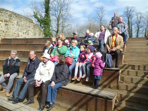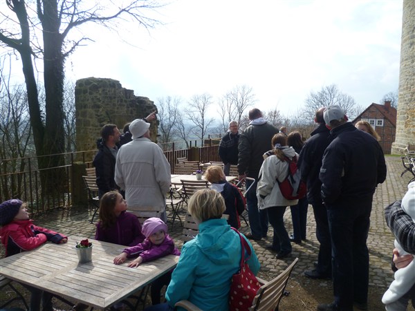In diesem Jahr führte uns unser alljährliches Angrillen zur Burg Ravensberg. Insgesamt 9 Trabis mit 16 Erwachsenen und 7 Kindern fuhren von Fam. DerMatze um 14.00 Uhr zur Burg. Nachdem wir vom Parkplatz ca. 800 m bergauf gelaufen sind, bekamen wir eine gut 2 stündige sehr interessante und spannende Führung.