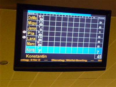 in Grund und Boden gebowlt. Nachdem wir die Bahnen platt gebowlt haben, sind wir zum Schnitzelbuffet - Essen gefahren. Alles in allem wieder ein