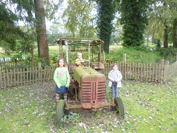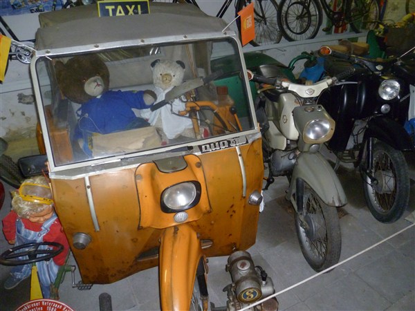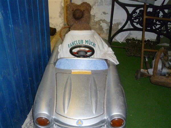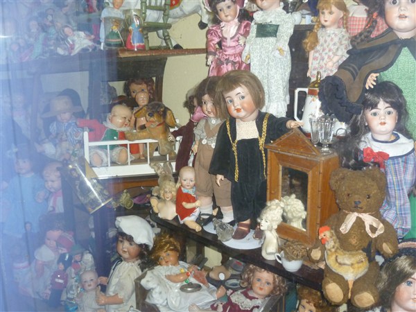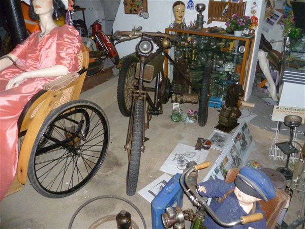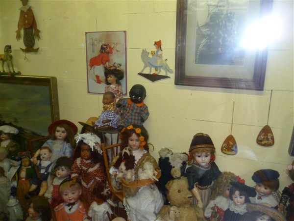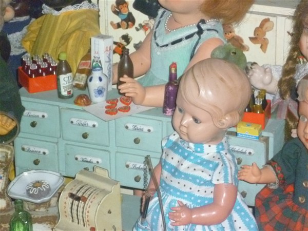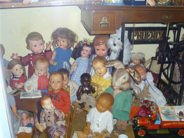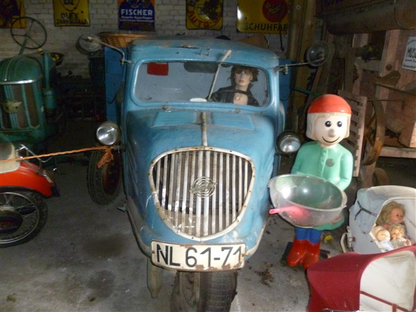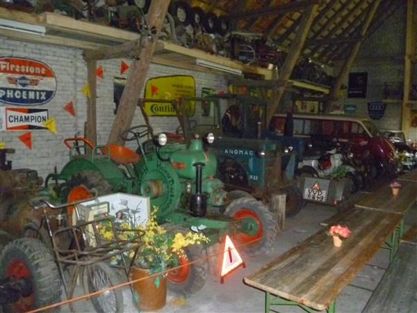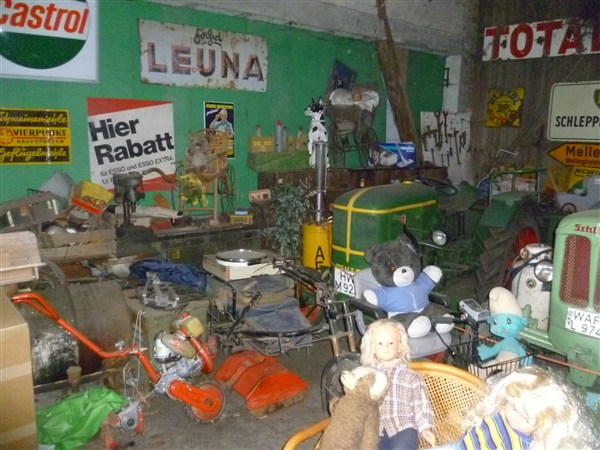älteste von 1898. Weitere alte Traktoren, Autos, Blechschilder, Spielzeugautos und zahlreiche Puppen runden das visuelle Angebot ab.
