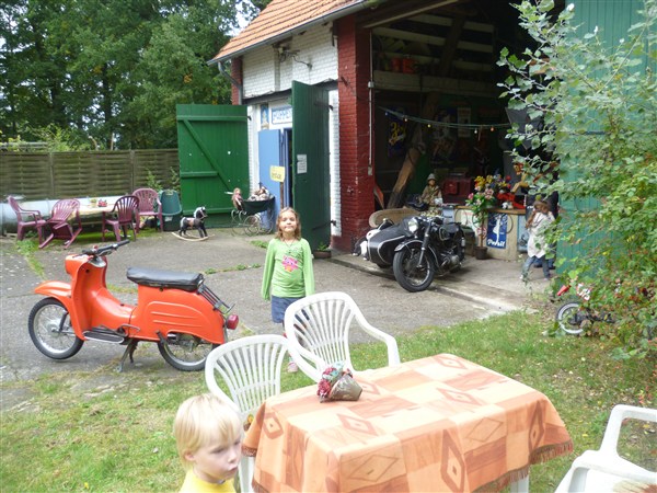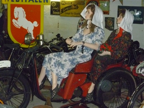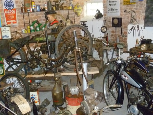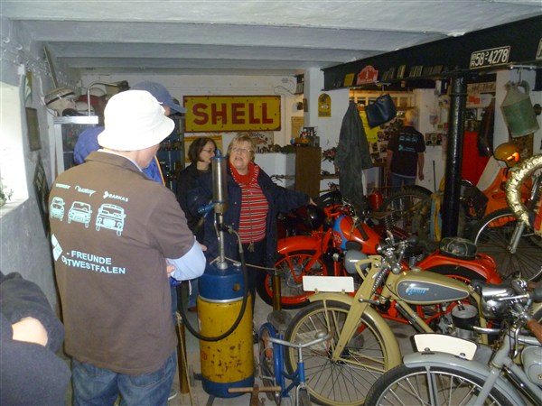 zum privaten Motorrad- und Puppenmuseum Beckmann, Beelener Straße 35 in Harsewinkel. Dort stehen in mehreren Scheunen einige 100 Motorräder, daß