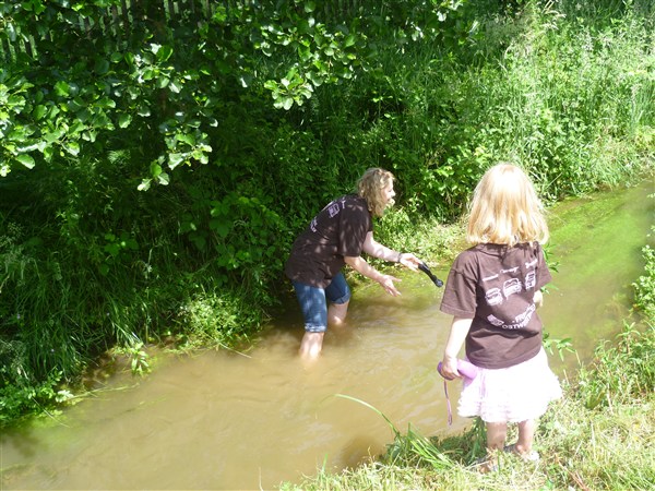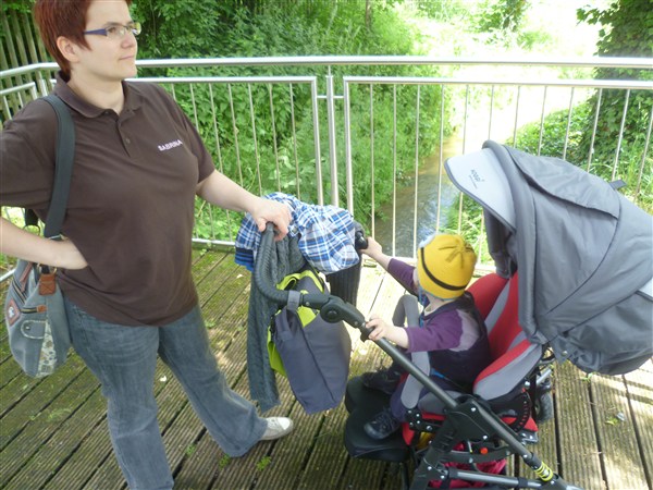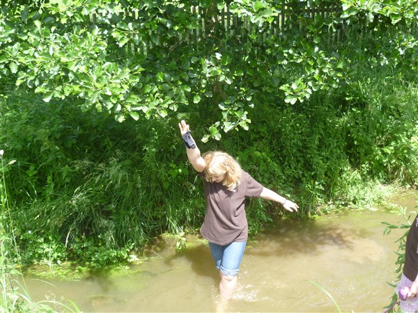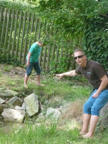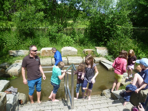 Schweine streicheln gingen wir noch zu der Eder-Quelle.Dort wurde eine von Justin verlorengegangene Kindersocke durch Irene gerettet.