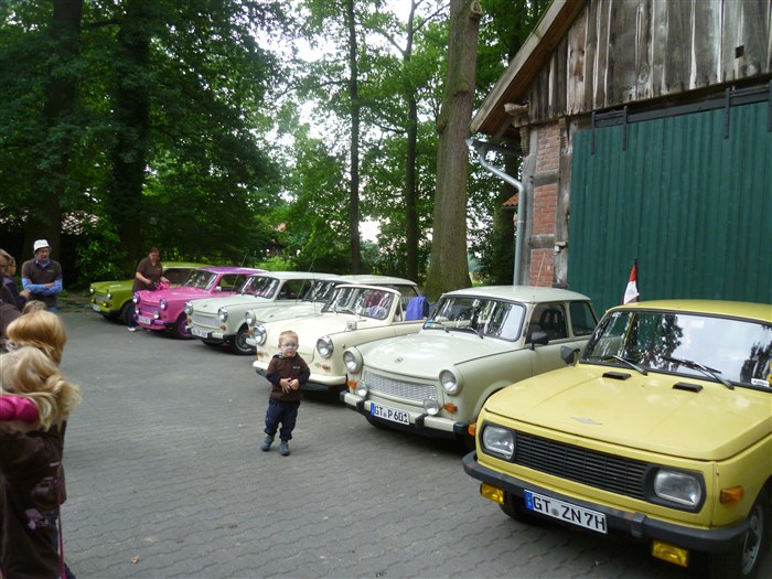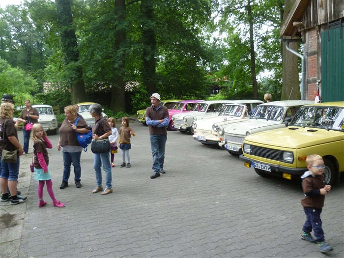 Am Sonntag, 12.06. waren wir mit 17 Erwachsenen und 7 Kindern verteilt auf 9 Trabis und einem Wartburg im Hofcafe Johannleweling,