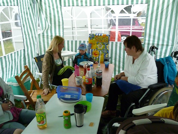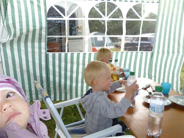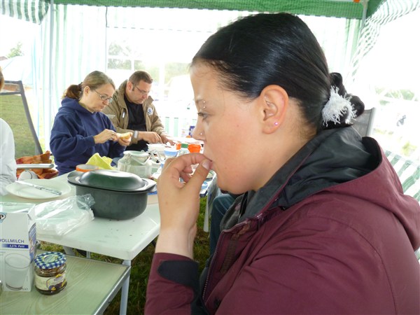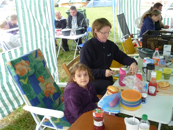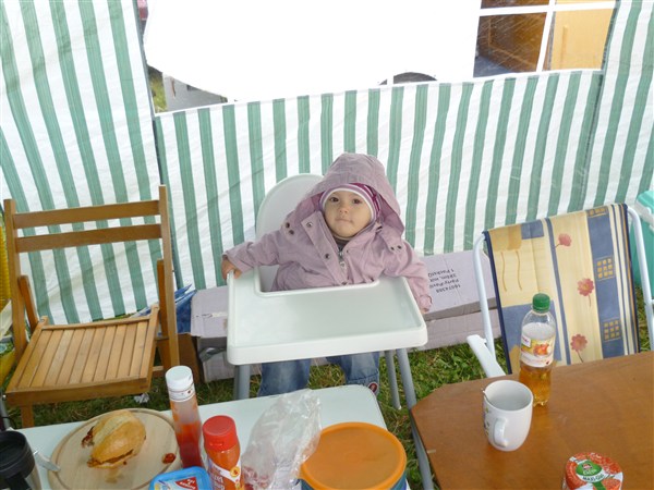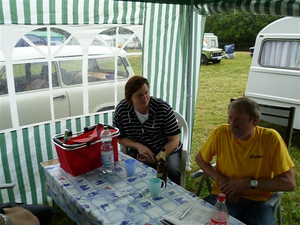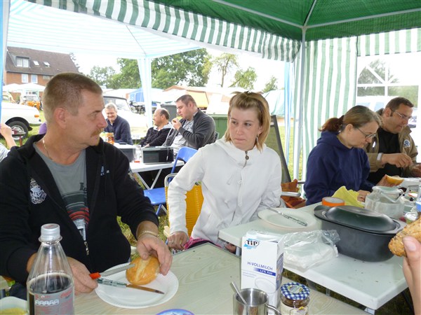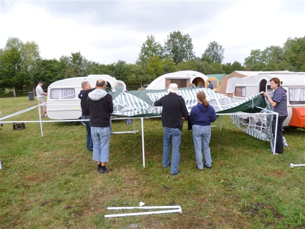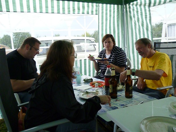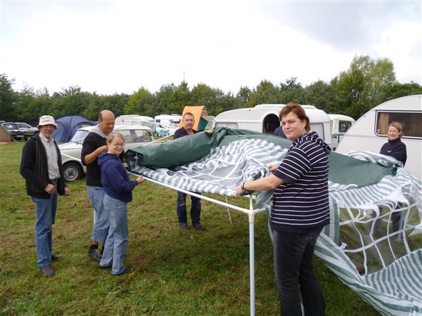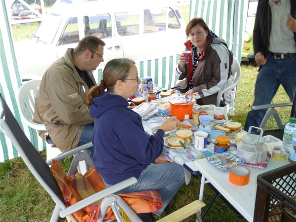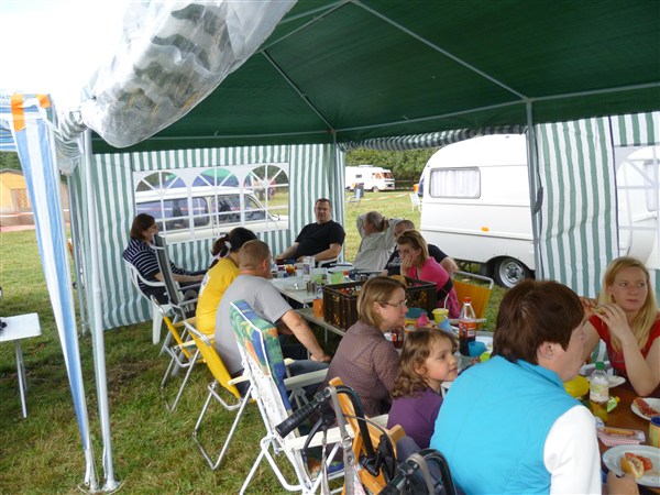 drapierten die Wohnwagen und den Klappfix, das Müller Dachzelt stand in wenigen Sekunden sowie die Gartenpavillons. Dann wurde gemütlich bei herrlichem Sonnenschein gefrühstückt.