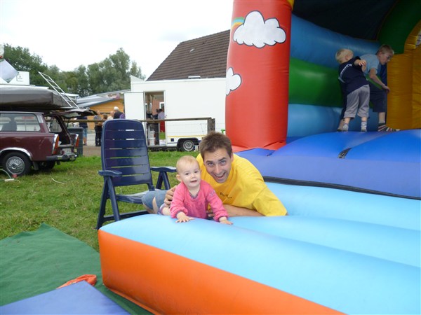 Mit dem Wetter ansich hatten wir viel Glück, denn erst gegen Abend fing es ungemütlich an zu regnen. Tagsüber belustigten sich die Kinder ganz gemütlich auf der Hüpfburg und beim Malen, die