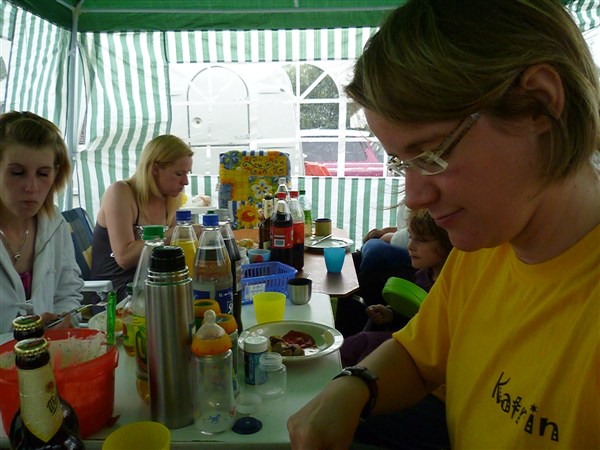Nachdem es sich gegen Abend ungemütlich einregnete, wurden die Grillwaren gemütlich erhitzt; es gab Kartoffeln mit Kräuterquark und diverese alkoholische und non-alkoholische Getränke.