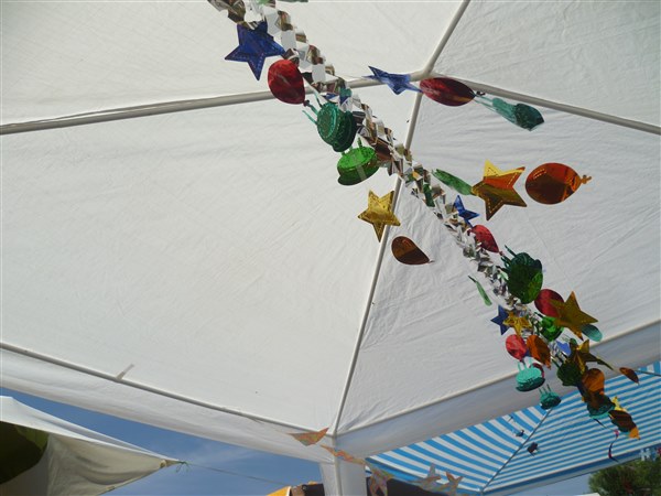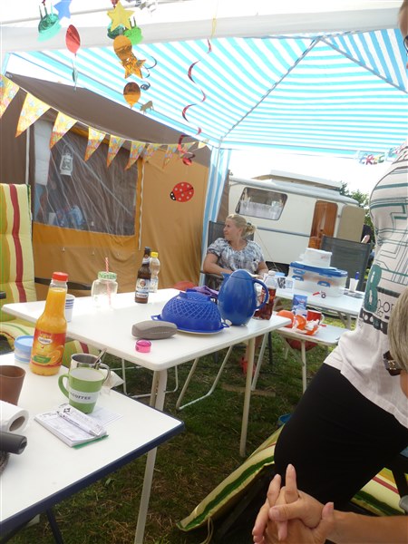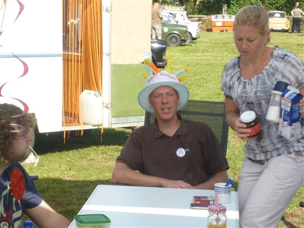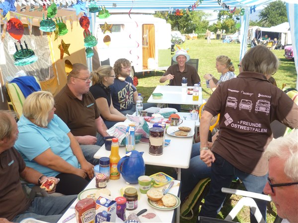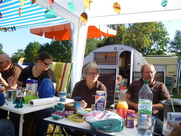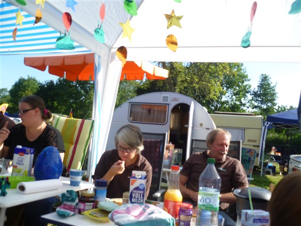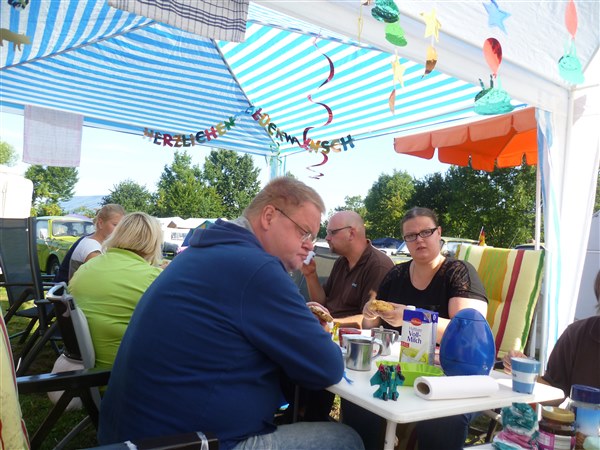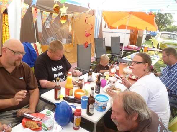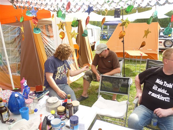 Weiterhin wurden die Pavillons geschmückt, da unser Ingo am Samstag Geburtstag hatte und mit uns etwas feierte. Am NAchmittag wurde ein von den Sputniks extra restaurierter DDR-Anhänger auf
