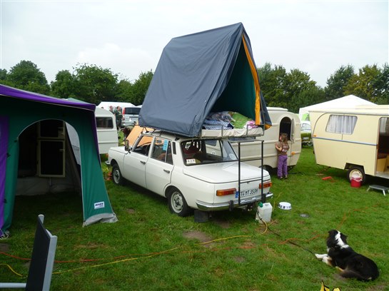 ihrem Trabant 600/601 Ostermann den 1. Platz. DerMatze erlangte mit seinem Wartburg 353 mit Müller-Dachzelt den 1.Platz in der Kategorie "schönster