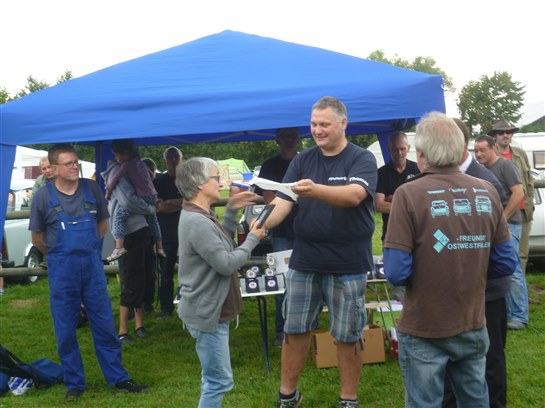 Mattis den 1.Platz bei den Jungen. Mit 8 Fahrzeugen waren wir die 3.größte Gruppe und bei der Kategorie "schönsterTrabant Umbau" belegte Katrin mit