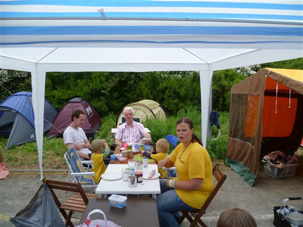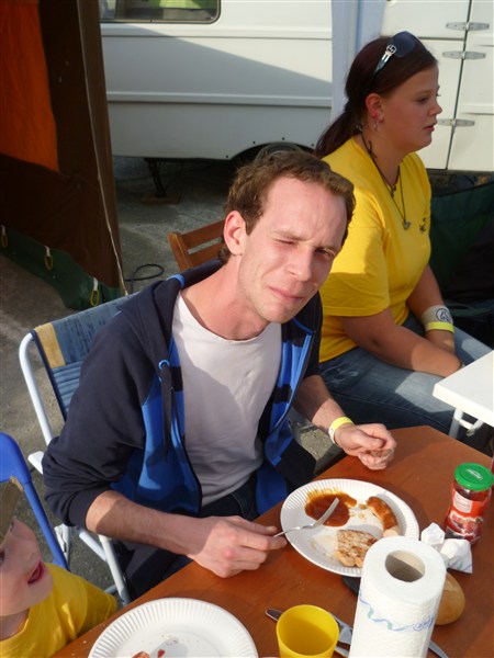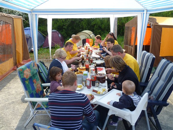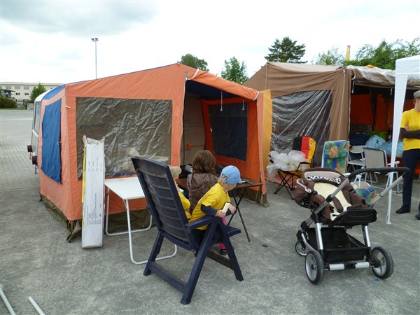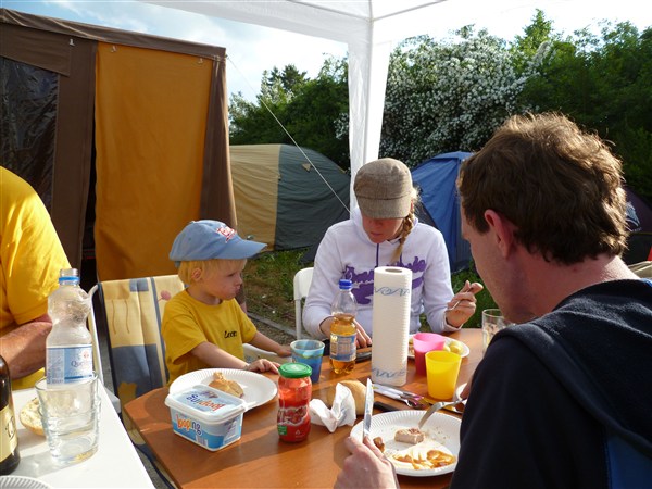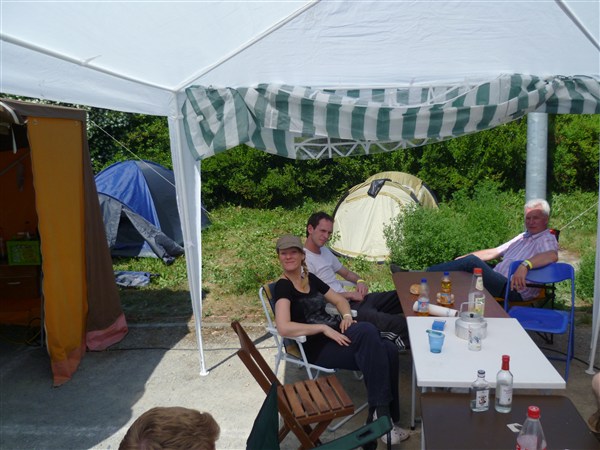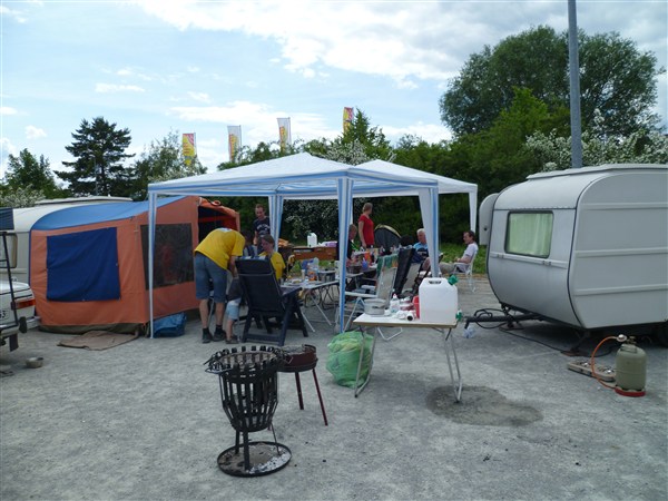 unsere Zelte auf, drapierten die Wohnwagen und stillten unseren Hunger beim gemeinsamen Frühstück. Pünktlich gegen 13.00 Uhr zog eine kleine Regenfront über Mühlhausen, der