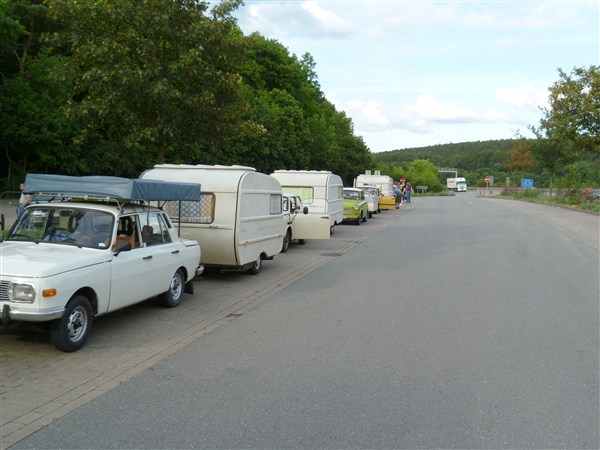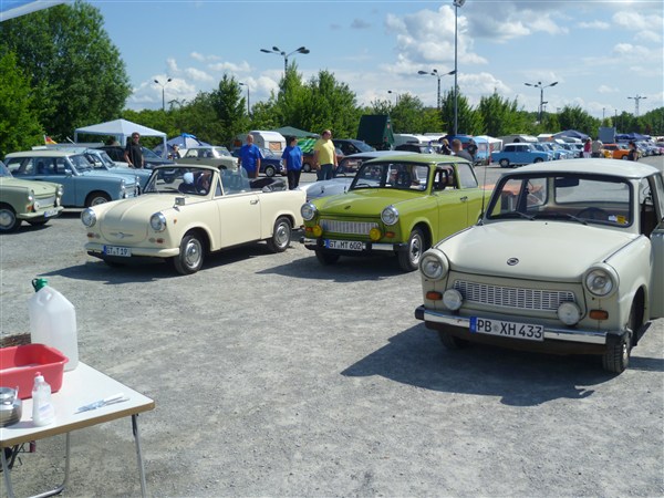 Am Samstag, den 11.06. trafen wir uns in Paderborn mit insgesamt 9 Trabis und 2 Wartburg 353, um gemeinsam zum TrabiTreff nach Mühlhausen/Thüringen (200 km) zu fahren.