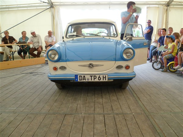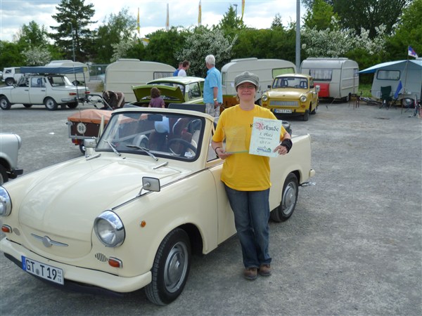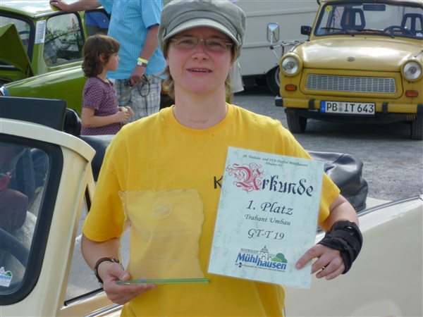 In der Kategorie "schönster Umbau Trabant" konnte Katrin mit Ihrem Trabant 601 Ostermann-Cabrio mit Front-und Heckteil vom 600er den ersten Platz belegen! Der Pokal für den