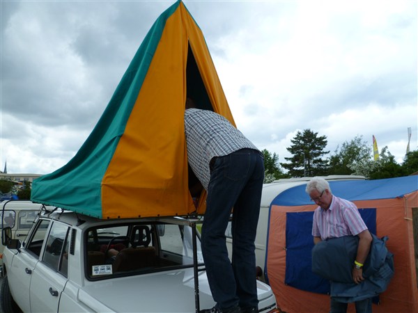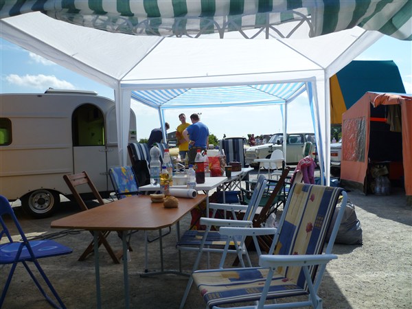 Um 6.30 Uhr ging es los. Unterwegs wurden wir von Regen begleitet. Als wir gegen 10.30 Uhr das Treffen-Areal erreicht hatten, war der Regen verschwunden. Wir bauten