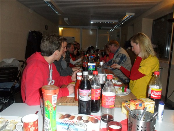 ein besinnliches Quiz mit wahnsinnigen Preisen durchgeführt. Abends gab es besinnlichen Braten mit Sosse, Würstchen und Käsekraukauern, selbstgemachte Salate usw.